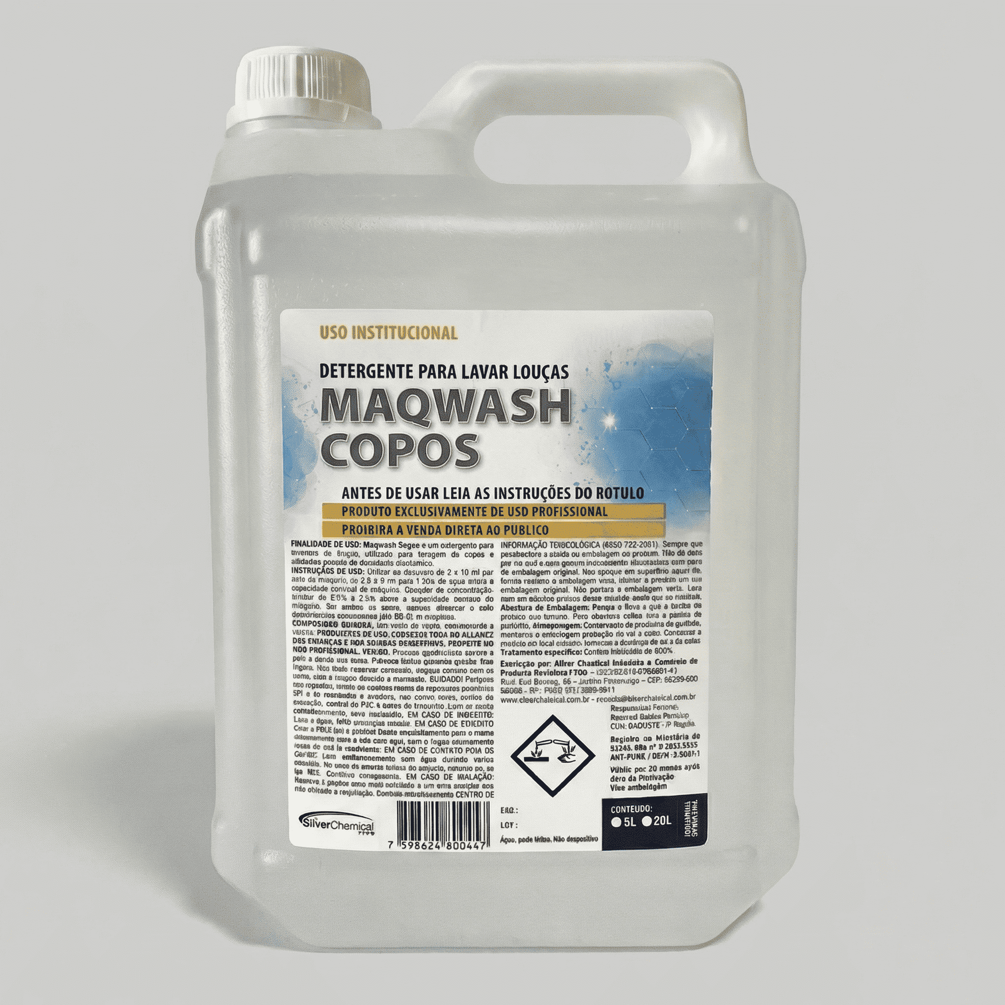MAQ-Wash Copos 5L – Detergente alcalino concentrado para lavadoras automáticas. Ideal para limpeza de copos e utensílios. Alto rendimento e performance profissional.